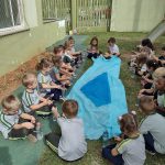 Roda de conversa: a professora passou um recipiente com água, para que cada um segurasse, observasse e relatasse a respeito do que sentiu. Após as considerações das crianças, a professora resgatou as atividades que já estavam sendo desenvolvidas desde o início do ano letivo, pois a água é um bem precioso na natureza que precisamos proteger e cuidar para não faltar. Falaram sobre a importância da água para os seres humanos, animais e plantas; e que para ter saúde precisamos estar bem hidratados, também sobre a importância da água para higiene corporal, higienização dos alimentos e do ambiente.