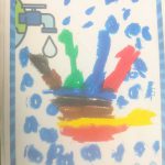 Na aula de arte foi realizada uma pintura com guache com o tema “Preservar a água está em nossas mãos”