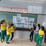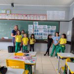 Alunos do 2º ano na aula de ciências com o tema Ciclo da água.