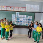 Em seguida, após o registro no caderno de um texto informativo, os alunos realizaram a interpretação e na sequência a pintura do planeta terra destacando a “água” para a produção de cartazes.