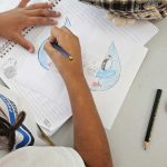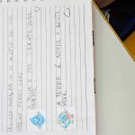 Com as palavras: gota, planeta e escovação foram escritas frases.