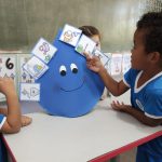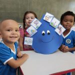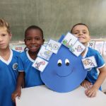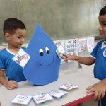 Para iniciar o trabalho de conscientização dos alunos quanto ao uso da água, realizamos uma roda de conversa sobre as ações que devemos ter para economizar água e em seguida os alunos mostraram o que aprenderam utilizando como recurso visual a gota e as imagens com figuras que representam as formas de economizar água.