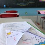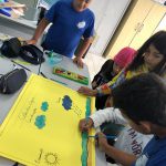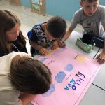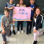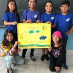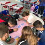 Os alunos do 5°ano com a professora Gabrieli, trabalhando o ciclo da água e abordando a contribuição para a formação de cidadãos conscientes diante da realidade em que o mundo vem enfrentando com a escassez de água.