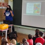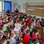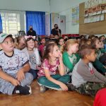 As crianças interagiram com a palestra e foram presenteados com copos de água mineral e squeezes, para utilizar a Água com consciência e sem desperdício.