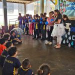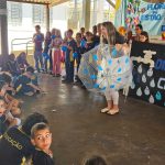 Após atividades de conscientização do uso da água e formas de economizar, foi realizada uma apresentação teatral que teve como objetivo levar de forma lúdica para os alunos, como o corre o ciclo da água. A apresentação teatral contava a história da gotinha de água e do percurso que realiza ao longo da sua vida, além de trazer também a importância de economizarmos esse recurso e fazermos o uso consciente. A apresentação teatral foi realizada para todos os alunos da escola.