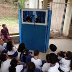 Assistiram o teatro com fantoches falando da importância do reflorestamento.