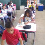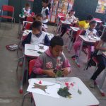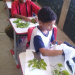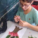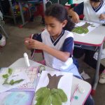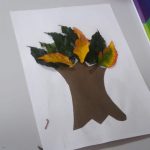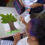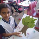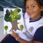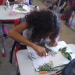 Alunos do 3º Ano C montaram folders de árvores com folhas, flores e galhos de árvores.