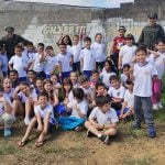 Nós da EMEB “Prof. Gaspar Rodrigues de Mattos” para comemorar o dia da árvore e preservar o meio ambiente, trabalhamos em sala atividades sobre a data. Em parceria com três policiais ambientais, plantamos mudas de árvores no terreno em frente a nossa escola.