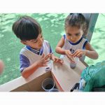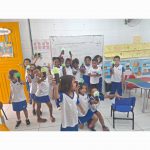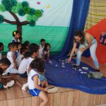 Iniciamos as vivências com a apresentação e dramatização dos alunos com a música, Sementinha de Aline Barros, onde os alunos foram caracterizados de acordo com os personagens da música e fizeram a coreografia da mesma. Em seguida, realizamos no pátio o Jogo dos Sete Erros, onde a professora preparou um cenário com situações de poluição do ambiente e os alunos deveriam identificar quais eram esses erros.