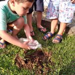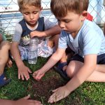 PLANTANDO UMA ÁRVORE NO PARQUINHO DA ESCOLA PARA FAZER SOMBRA.