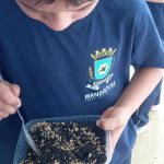 Materiais utilizados: terra, água,  sementes, potes descartáveis.