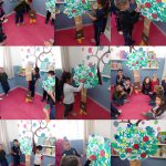 Realizamos a confecção das partes da árvore: raiz, tronco, galhos, flores e frutos separadamente, em seguida, com a participação de cada aluno fizemos a montagem da árvore em um suporte. Não esquecendo também de alguns animais que se abrigam em árvores: borboletas, pássaros entre outros citados pelas crianças.