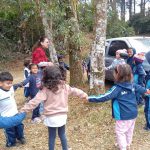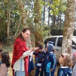 Realizamos uma roda de conversa sobre a importância das árvores para nossa vida diária, refletindo sobre como elas nos oferecem sombra, frutos, ar mais puro e embelezam o ambiente. Em seguida, propus às crianças um passeio ao redor da escola para observar e apreciar as árvores encontradas pelo caminho, despertando nelas o olhar de cuidado e valorização da natureza.