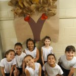 Em homenagem ao dia da árvore, os alunos do 1º ano C, após a atividade de conscientização da arborização, realizaram a seguinte atividade: andaram ao entorno da escola recolhendo folhas secas de árvores existentes na escola, para a criação de uma árvore coletiva em sala de aula.