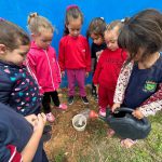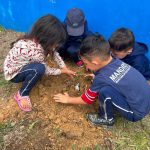 Iniciamos nossa roda de conversa falando sobre a importância das árvores para o meio ambiente. As crianças participaram ativamente, compartilhando suas hipóteses e ideias sobre o tema. Em seguida, nos dirigimos ao pátio da escola para realizar o plantio das mudas, vivenciando na prática o cuidado com a natureza e a valorização do meio ambiente.