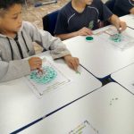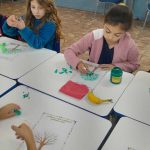 Também enfeitamos uma árvore com bolinhas de papel crepom e, usando a técnica de pintura com cotonete e tinta guache, criamos outra árvore cheia de cores e vida.