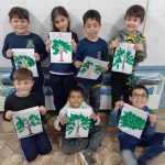 Em seguida, os alunos produziram lindos desenhos acompanhados de frases de conscientização sobre o cuidado com a natureza. Para finalizar, realizaram uma atividade de recorte e colagem, reforçando de forma lúdica e criativa o quanto as árvores são essenciais em nossas vidas.