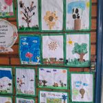 As crianças participaram de uma atividade artística utilizando rolinhos de papel higiênico coloridos para representar o caule da árvore. Com a foto de cada aluno, formamos a copa da árvore, tornando o trabalho ainda mais especial e personalizado.