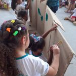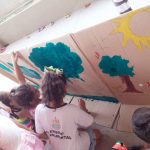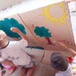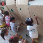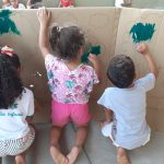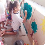 Sendo assim, as turmas da Educação Infantil da tarde fizeram um mural coletivo com árvores para enfatizar o cuidado e o respeito com as árvores que são indispensáveis para a vida dos seres humanos. O pequenos usaram muita tinta e criatividade e o mural serviu para ilustrar o cenário de uma apresentação teatral.