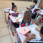 Foi realizada uma roda de conversa com os alunos sobre a importância das árvores para os seres vivos e como a primavera altera a paisagem com o nascimento das flores. A culminância da atividade foi um desenho de árvores utilizando a própria mão do aluno como molde.