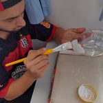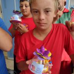 Após roda de conversa, foi oportunizado aos alunos a confecção de uma lembrança confeccionadas com garrafa pet, tinta, mensagem…
