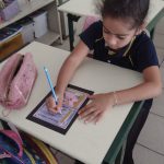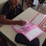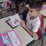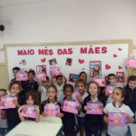 Após a explicação a professora solicitou que elaborassem um cartão para colocar no painel e depois levarem para as mamães.