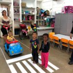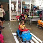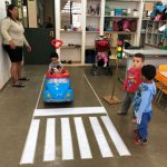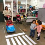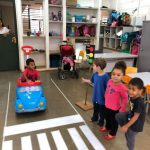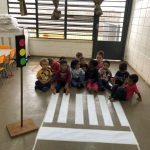De forma lúdica, as crianças participaram de um Circuito de Trânsito, simulando um percurso de carro em que conheceram faixa de pedestre, semáforo, placas e agentes educadores de trânsito.
