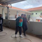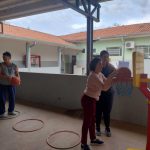 Hoje os nossos alunos do período da manhã fizeram alongamento e participaram do circuito.