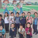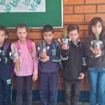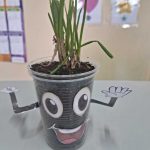 A empresa nos deu terra com adubo para os alunos plantarem uma horta na escola e levaram mudinha de cebolinha para casa, assim eles aprendem plantar e cuidar do meio ambiente em casa também;