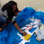 Após separar os lixos, os alunos confeccionaram os peixes e colocaram no rio, simbolizando a vida e limpeza dos nossos rios.