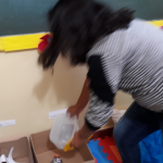 A atividade proposta despoluir o rio. As professoras montaram um rio sujo com objetos recicláveis, dos quais os alunos teriam que limpar o rio e separar os lixos em plásticos e papel.