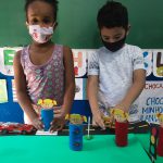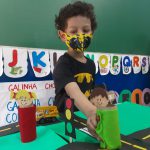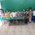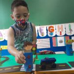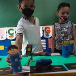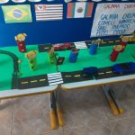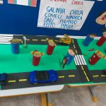 Brincadeira sobre o que foi conversado (socialização); utilização de bonecos confeccionados com E.V.A e rolo de papel higiênico representando o pedestre. Cada aluno colocou em prática sobre a regra quanto a utilização da faixa de pedestres, através de uma maquete representando as vias, carrinhos de brinquedo representando os motoristas e sinalizações confeccionados com papel colorido e canudo/palito. E outros brinquedos decorativos para representar cenário urbano.