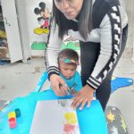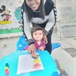 Os alunos do berçário I fizeram carimbo com as mãozinhas nas cores vermelha, amarela e verde com frases educativas para uma boa prática no trânsito para que possam distribuir para seus familiares.
