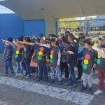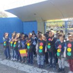Os alunos juntamente com a professora confeccionaram plaquinhas de trânsito, em seguida, foi realizada uma atividade lúdica utilizando acessórios e um semáforo também confeccionados por eles para que compreendam a importância de respeitar a faixa de pedestre, reforçando o significado de cada cor do semáforo. Após a atividade lúdica, realizaram uma caminhada pela escola.