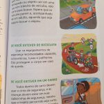 Após a leitura e a conversa, refletimos sobre respeitar as regras de trânsito, principalmente sobre atravessar a rua na faixa de pedestre, observar as cores do semáforo e olhar para os dois lados antes de atravessar.