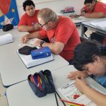 Eu, professora Bruna Bogo Ribas leciono na Escola Municipal Tia Apolônia, em uma turma do EJA,  na modalidade Educação Especial,  na cidade de Rio Negro-PR