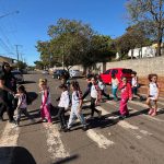 Foram desenvolvidas várias atividades abordando o tema, iniciando com rodas de conversa, vídeos mostrando a importância da conscientização sobre a segurança no trânsito, caminhada realizada no entorno da escola para observação dos sinais de trânsito e faixas de pedestre. em seguida foram feitos desenhos e cartazes pelos alunos e exposição dos trabalhos no 08 de agosto.