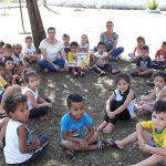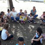 Roda de história sobre os meios de transporte, passeio pela escola e conversa sobre a importância de utilizar e respeitar os amigos e regras da escola, identificar o lugar apropriado para brincar,etc.
