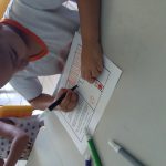 Após desenharem no informativo para levarem para casa, escolheram alguns desenhos que foram reproduzidos no informativo maior.