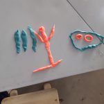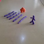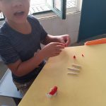 Para finalizar, as crianças puderam brincar com massinha, e pedimos para que modelassem alguma coisa sobre tudo que havíamos visto e conversado no dia, eles escolheram fazer a faixa de pedestre, o pedestre e o carro.
