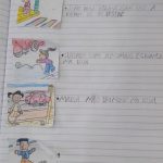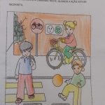 Em um segundo momento, realizamos algumas atividades de pintura para identificar as ações corretas de pedestres no trânsito. Como meio de conclusão, realizamos a escrita coletiva de frases sobre imagens correspondentes a boas e más ações de pedestres no trânsito.