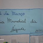 A professora Virgínia Carboniéri, professora de Português do turno vespertino, desenvolveu com os alunos dos 6º, 8º e 9º anos diversas atividades relacionadas ao Dia Mundial da Água. Durante duas semanas os alunos trabalharam com música, textos e outras atividades para, no final, produzirem um mural que ficou exposto no corredor da escola. A professora e os alunos ouviram a música “Águas de março”- Tom Jobim, cantaram, debateram, analisaram a importância da água na vida dos seres vivos em geral e para os seres humanos e por fim produziram através de textos e desenhos o que entenderam do assunto. A atividade rendeu muita participação das turmas, muitas risadas e alegria dos alunos enquanto cantavam a música e produziam os trabalhos.