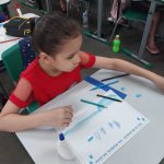 Para encerrar a aula, as crianças criaram desenhos com recorte e colagem de papéis coloridos sobre o “Dia Mundial da Água” e usos conhecidos da água na vida cotidiana.