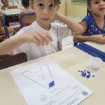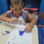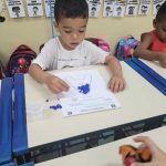 Após a leitura e debate por meio da roda de conversa as crianças realizaram a exploração da letra “A” por meio de colagem com papel crepom azul, reforçando a importâcia da água limpa.