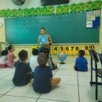 A atividade realizada contou com a leitura do livro “Mundinho Azul” e uma roda de conversa com os alunos para que pudessem comprrender a importância da água, seus usos, estado físico e a necessidade de preservar esse recurso natural.
