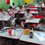 Foi realizado pesquisas, montagem de cartazes, desenho representativos com colagem, painéis, máscaras e etc.