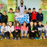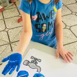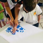 Confecção de um cartaz com a impressão das mãos utilizando tinta guache.