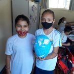 FIZERAM UM GLOBO, UTILIZANDO UM BALÃO, OBSERVANDO-SE OS CONTINENTES E AS ÁGUAS DO PLANETA.