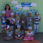 Finalizamos com a confecção de um brinquedo feito com garrafas pets, mostrando a importância de reciclar.