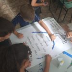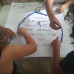 Como atividade cada um desenhou algo que pode fazer para economizar a água e foi confeccionado um cartaz.